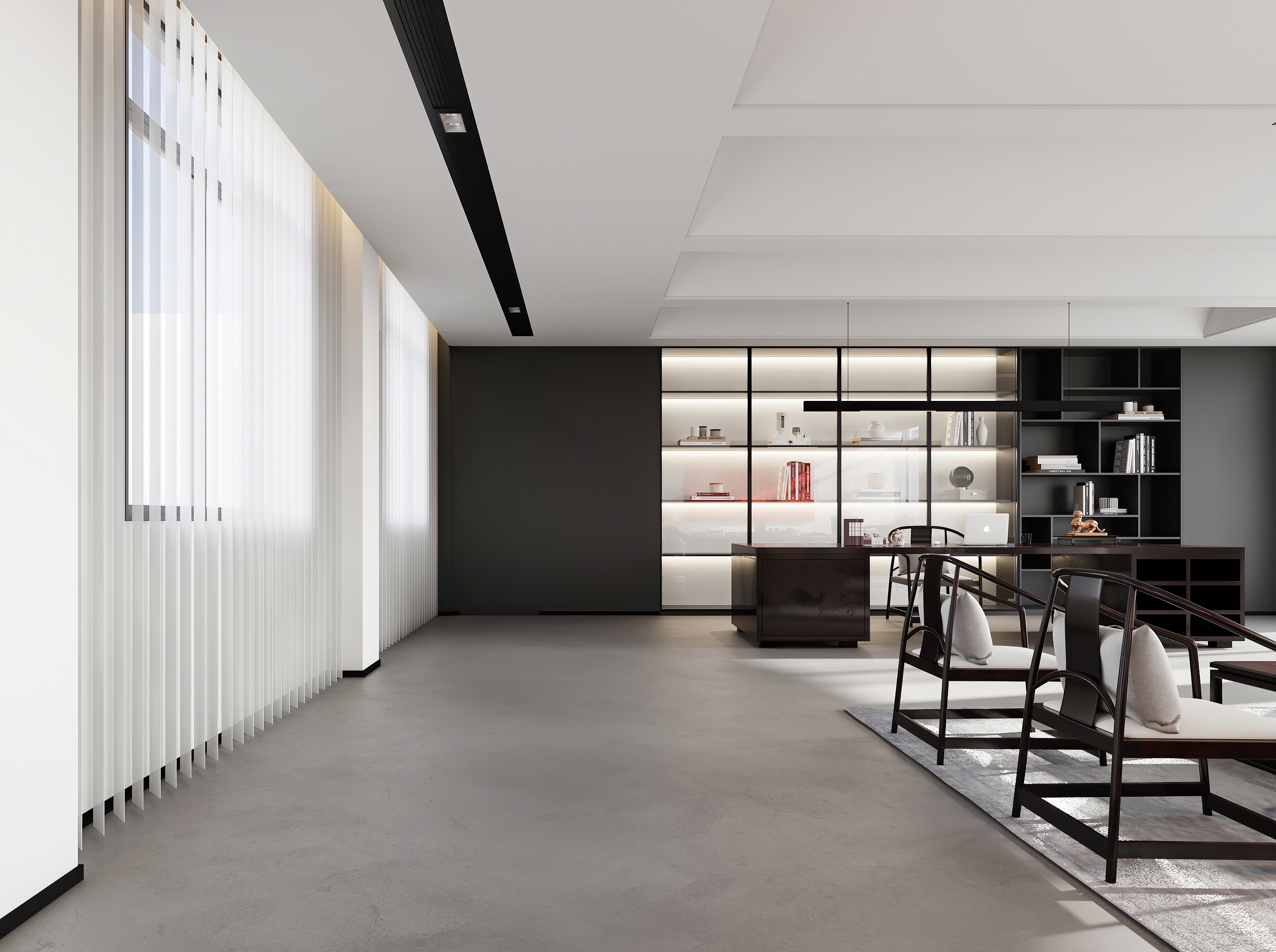 案例說明: 本案在這個辦公室設計中,甲方要求,有功能區設置,有總經理,總經理是本公司中最高的職務,所以在我的設計中給他選擇了一個比較好的朝向,采光比較好、地面采用仿古顯紋復合強化淺色木地板。防滑耐磨。幾何式的辦公桌莊嚴不失人性化。自然的美巧妙的運用到設計之中,突顯對美好生活的向往。放松工作時的狀態,副總經理兩間,裝修風格跟總經理相符,比較統一。會議室,在平面功能上??紤]了合理的行動路線,東面墻對應窗的位置設計了落地的玉砂玻璃隔墻,以滿足展示區的采光要求。