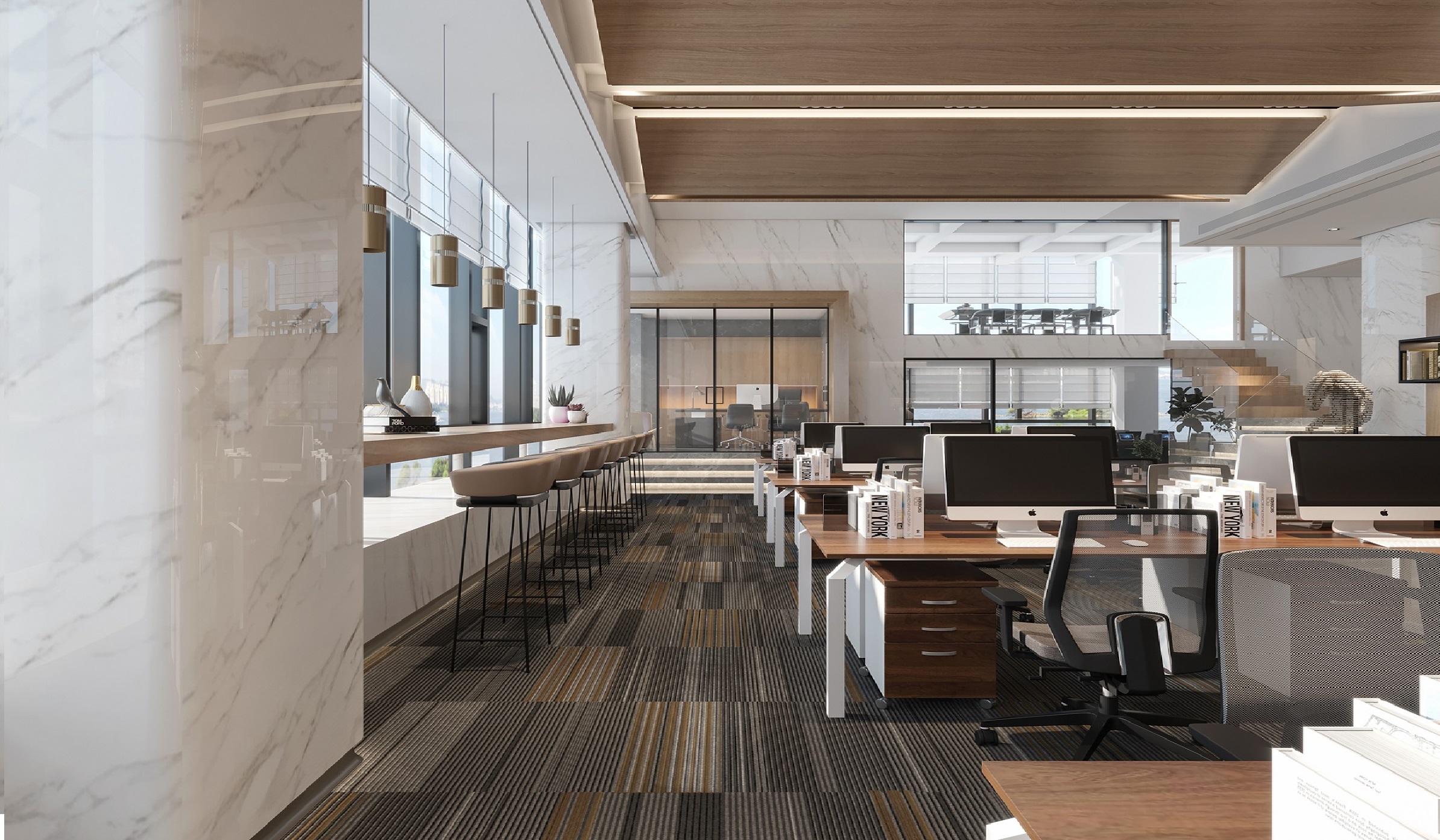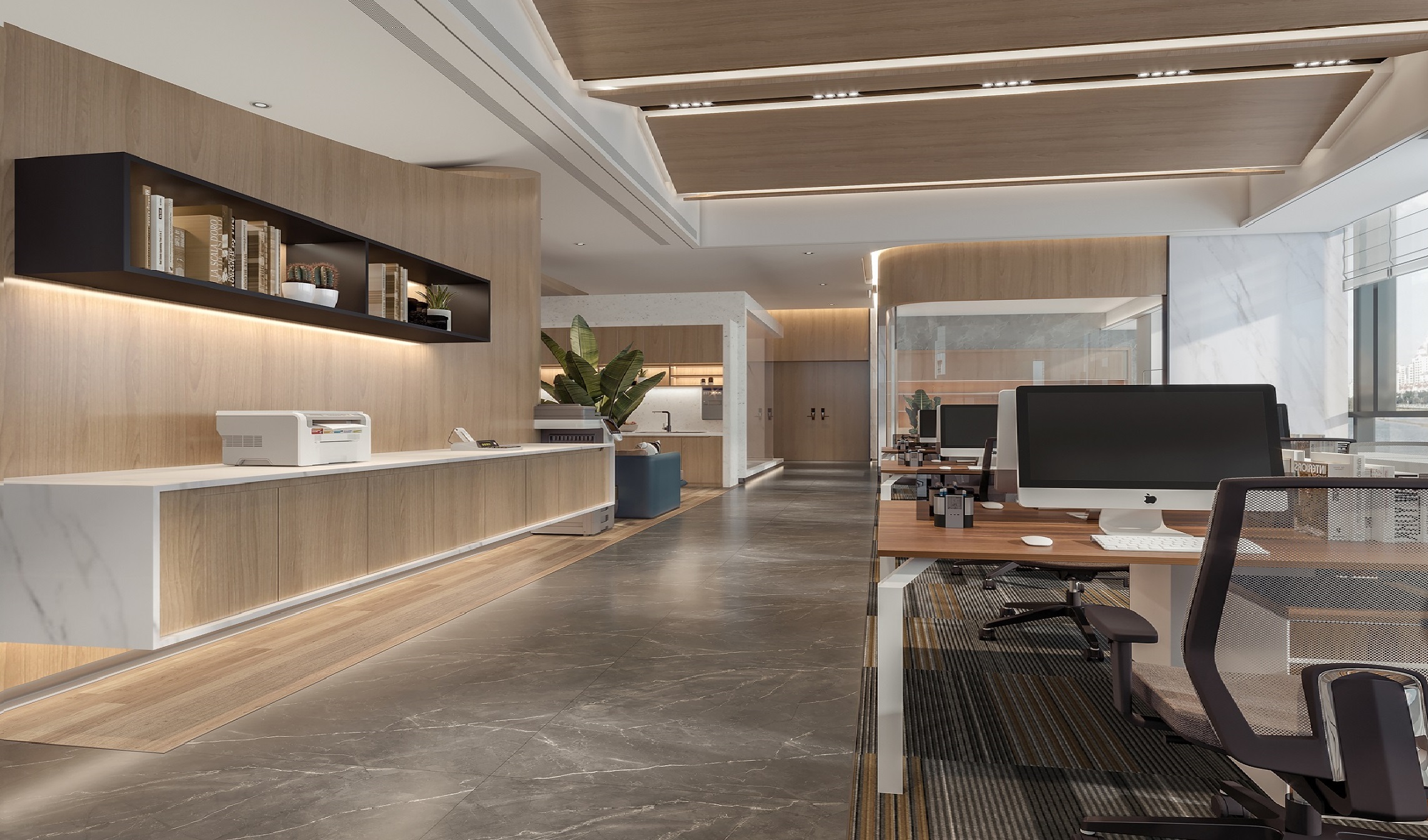 案例說明:本案著重體現工作與生活的有機融合。另外,在企業整體形象上,其獨特的個性直接影響著每一個員工的行為舉止,個性化辦公空間非常重要的一點就是展現企業形象,滿足企業精神和發展理念。基于此,在本方案設計時,設計師為迎合其現代的個性化辦公氛圍,特提煉出“靈透之材,蓬勃之勢”為主題。本案就其“鋼之靈透”,用象征化的表現手法,多元化的設計元素,力求整體風格與整棟大樓協調、清新、大氣的外觀設計保持一致,企業氣質內外渾然一體,展現出富有深刻內涵的視覺空間及該企業獨特的個性與特點,將機械制造行業復蘇這一時代特性滲透于整個空間,既突顯陽剛的機械制造企業特質,又蘊涵貴公司新興而極具沖擊力的蓬勃發展之勢!