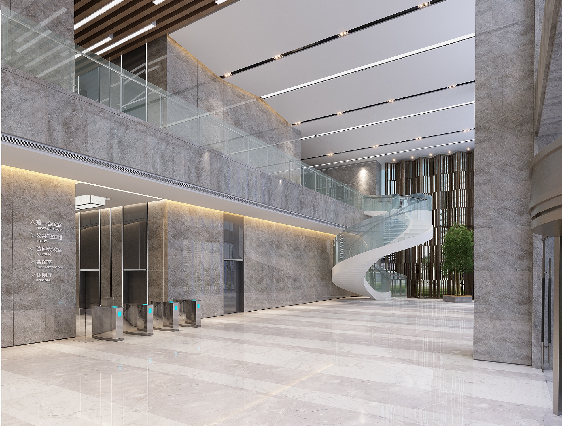 案例說明:本案為商業中心廣場及辦公樓裝修項目,裝修面積26000平方左右,設計師在設計的時候,在與業主的交流中了解到客戶希望打造一個時尚、現代的商業中心及現代化的辦公設計空間,在設計中設計師也依照此原則對廣場及辦公樓進行整體設計,在滿足企業需求的同時,也在著重強調商業及辦公室的實用性。