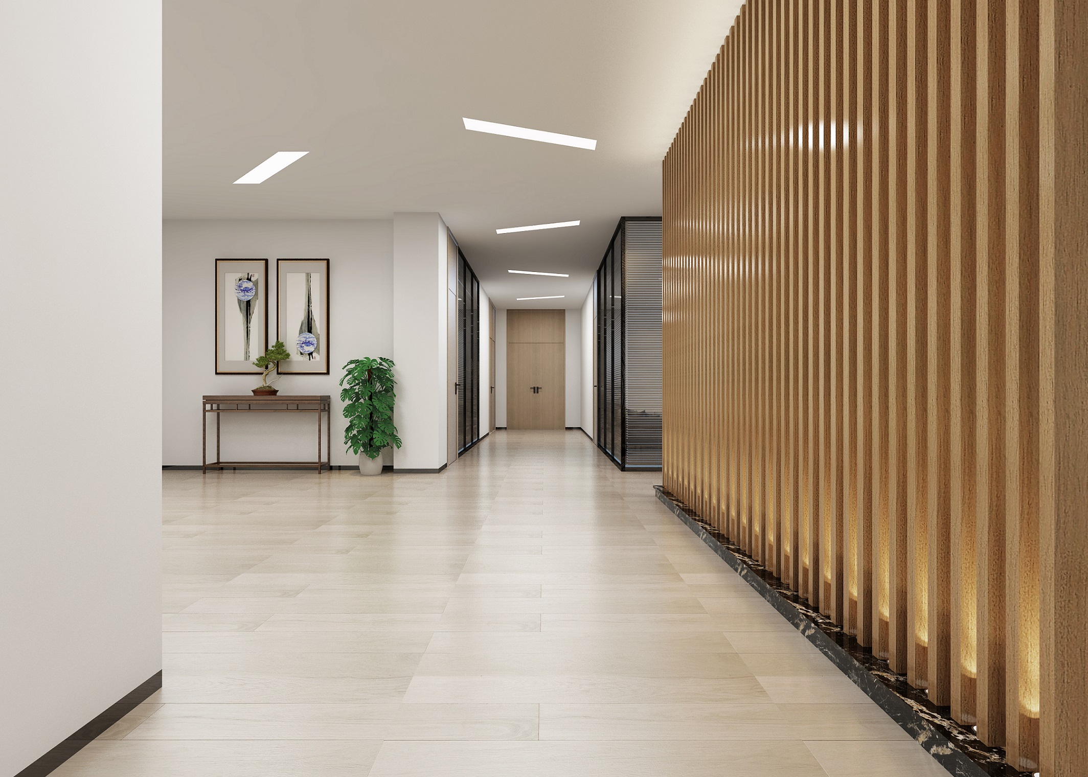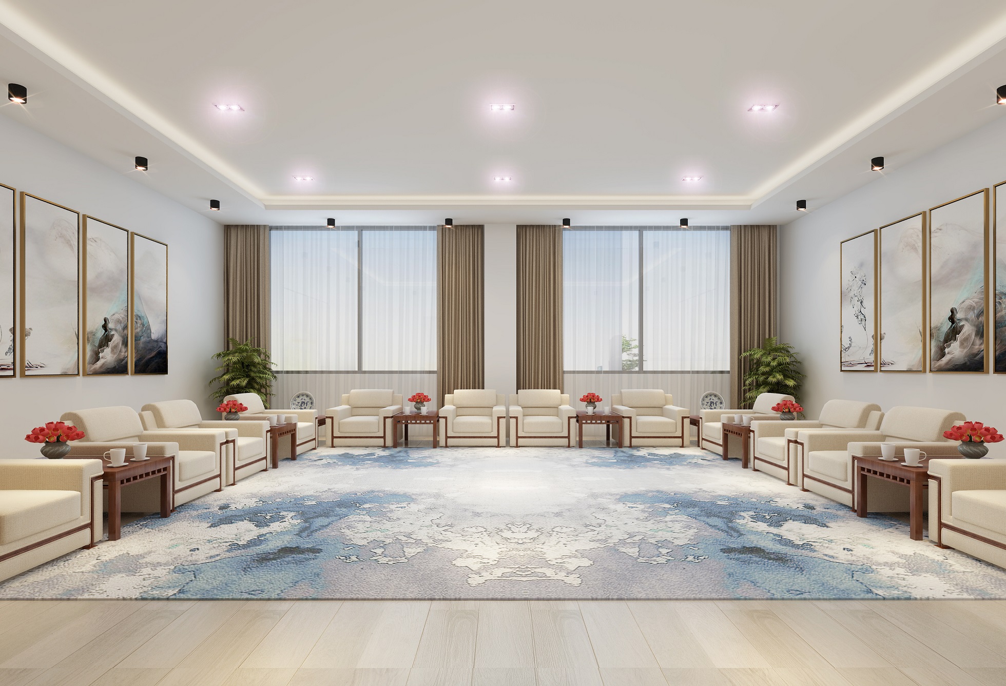 案例說明: 本案為上海機械制造公司自建辦公、生產、生活綜合體室內裝修項目,總占地面積600畝,本次施工內容為一棟辦公樓、一棟綜合樓,一棟生活樓,共三棟裝修面積約12000平方,本案在設計上追求功能與形式完美統一,優雅獨特,簡潔明快的設計風格。針對這一主題,設計上以協調各功能空間的使用要求為目的,布局上力求合理,功能上力求完備,動線計劃上爭取做到暢通合理,滿足功能要求,同時又給人以藝術之美感。創造出空間美,簡潔的面與面結合,虛與實的對比,簡單的線條。