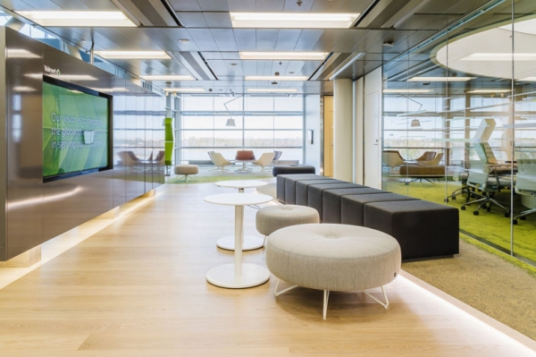 案例說明:本案設計理念表達圍繞其“靈透”,設計師在本案中大量使用了玻璃、銀色系列及淺色調的潔凈材料,如玻璃幕墻、銀質鋁塑板、水晶白麻石材、玻化磚等,圍繞本案主題,構筑個性化空間,該色彩搭配除了清透、雅致、穩重、大氣之外,亦表現出一種力度感和效率感。滲透入貴機械制造企業之“清透感”,亦反襯企業之“柔美感”。