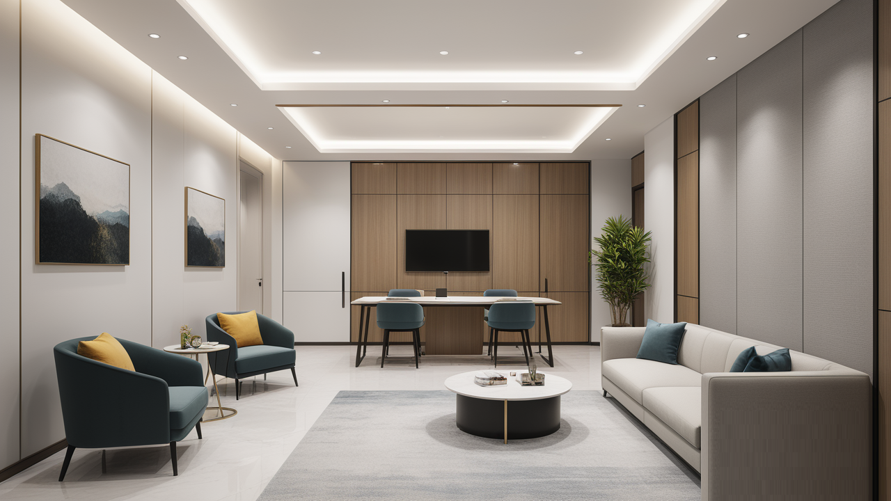 色彩搭配是辦公室設計中的重要環(huán)節(jié)。在選擇色彩時,既要考慮奢華感的營造,又要注意安全性。一般來說,暖色調(diào)能夠給人帶來溫馨、舒適的感覺,但也容易讓人產(chǎn)生疲勞感;冷色調(diào)則顯得簡潔、清爽,但可能會讓人感覺過于冷漠。因此,在辦公室設計中,可以采用冷暖色調(diào)相結合的方式,營造出既舒適又富有活力的工作氛圍。例如,在辦公區(qū)域采用淺灰色、米白色等中性色調(diào),搭配一些深色的家具和裝飾品,增加層次感和穩(wěn)重感;在休閑區(qū)域則可以采用一些明亮的色彩,如綠色、黃色等,營造出輕松愉悅的氛圍。