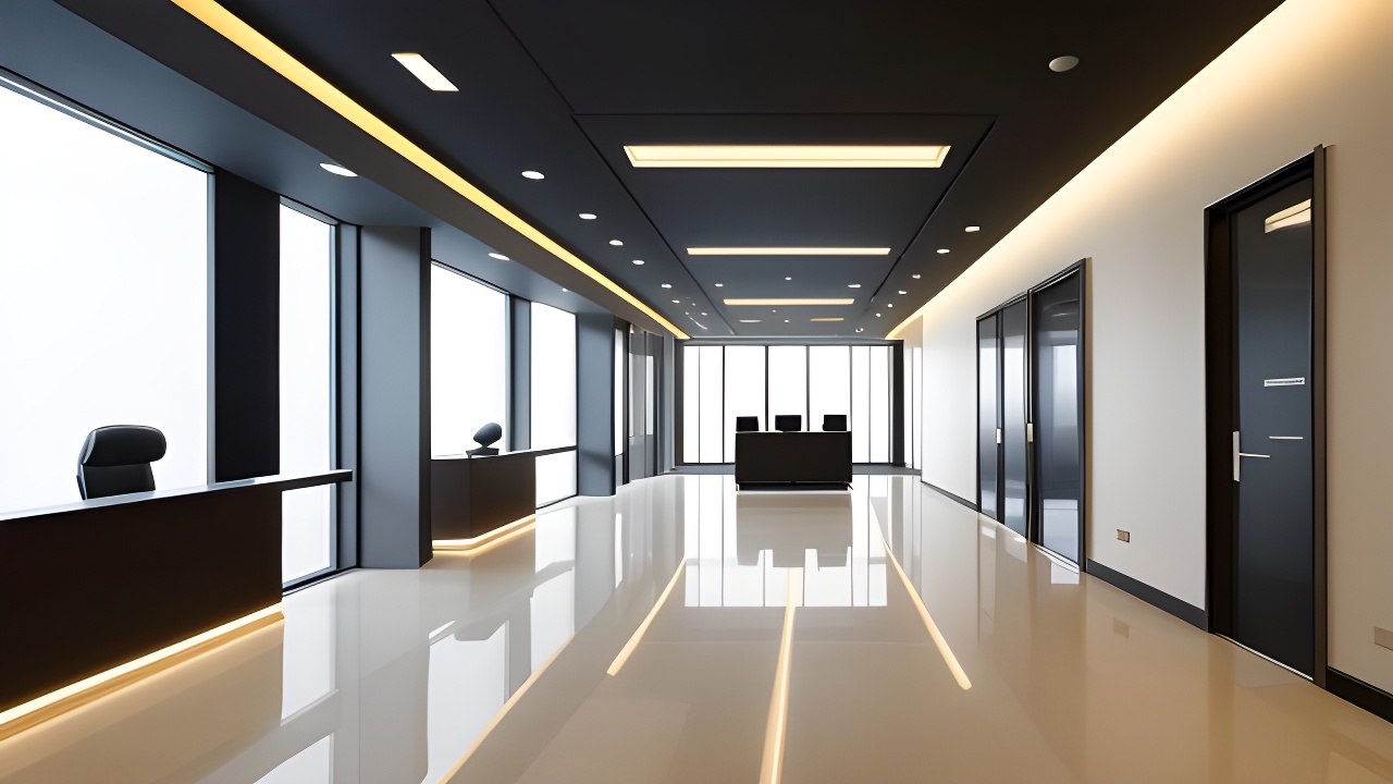 * 高級(jí)材質(zhì): 大面積玻璃隔斷、光潔石材(大理石、巖板)、環(huán)保飾面板、金屬(不銹鋼、鋁材)、高品質(zhì)地毯。
